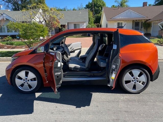 In short: a playful, punchy electric hatchback finished in eye-popping orange with a sensible black interior, low miles, and a full set of BMW’s factory features. It’s efficient, stylish, and has a personality — like a mini convertible that went to grad school.